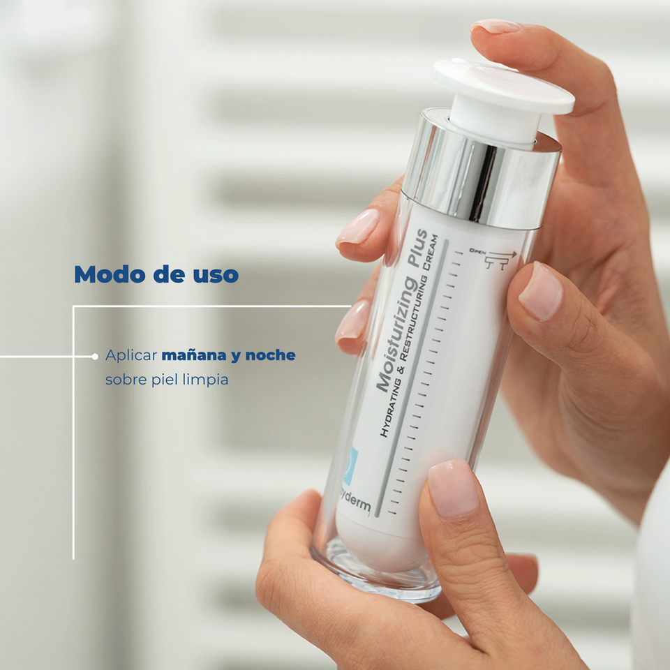 Cuenta con una fórmula integral y exclusiva de tres tipos de ácido hialurónico, cada uno de diferente peso molecular, que actúan en combinación para hidratar las tres capas de la piel.